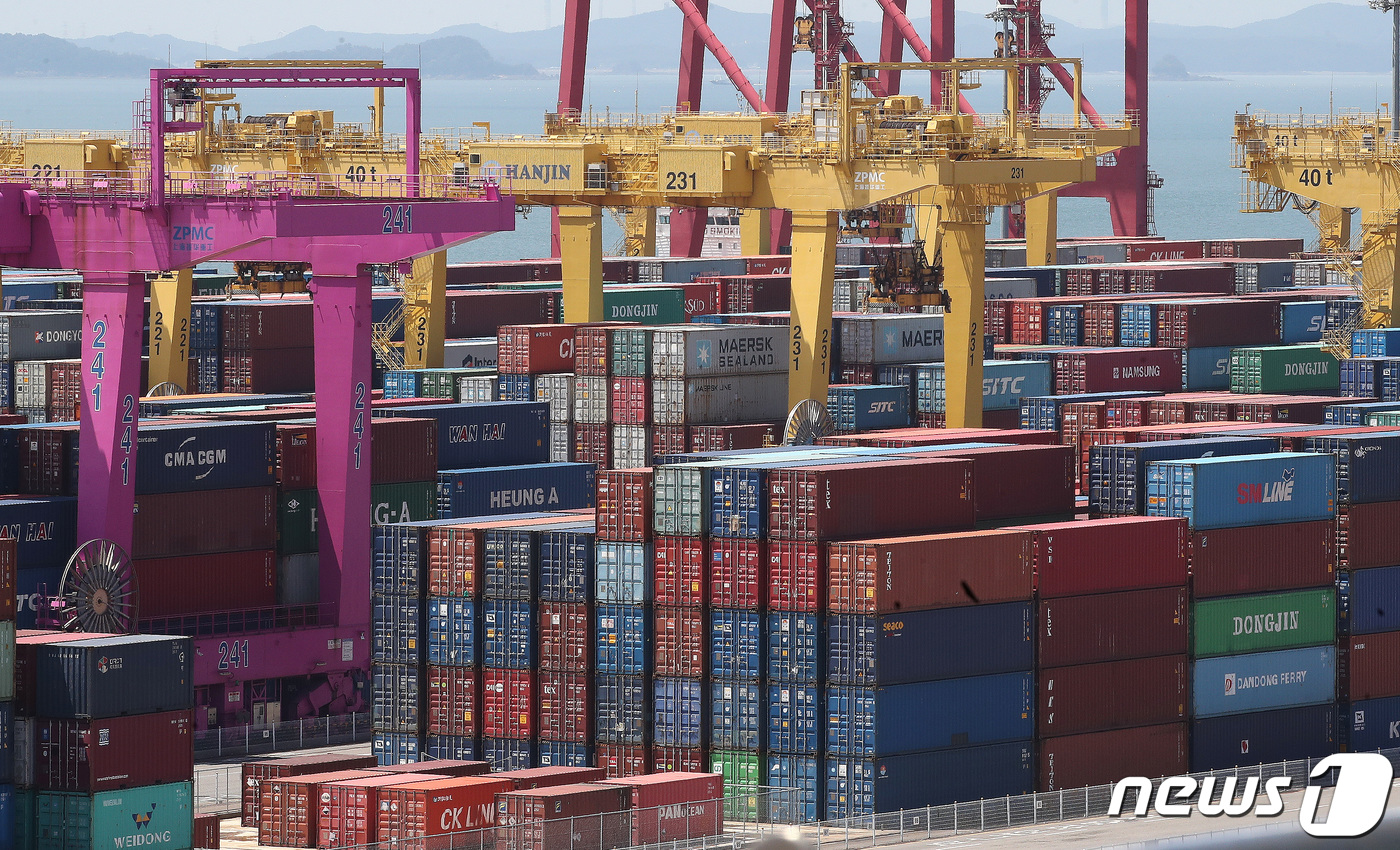 인천 연수구 인천신항에서 컨테이너 선적 작업이 진행되는 모습. 2022.8.1/뉴스1 ⓒ News1 임세영 기자 |