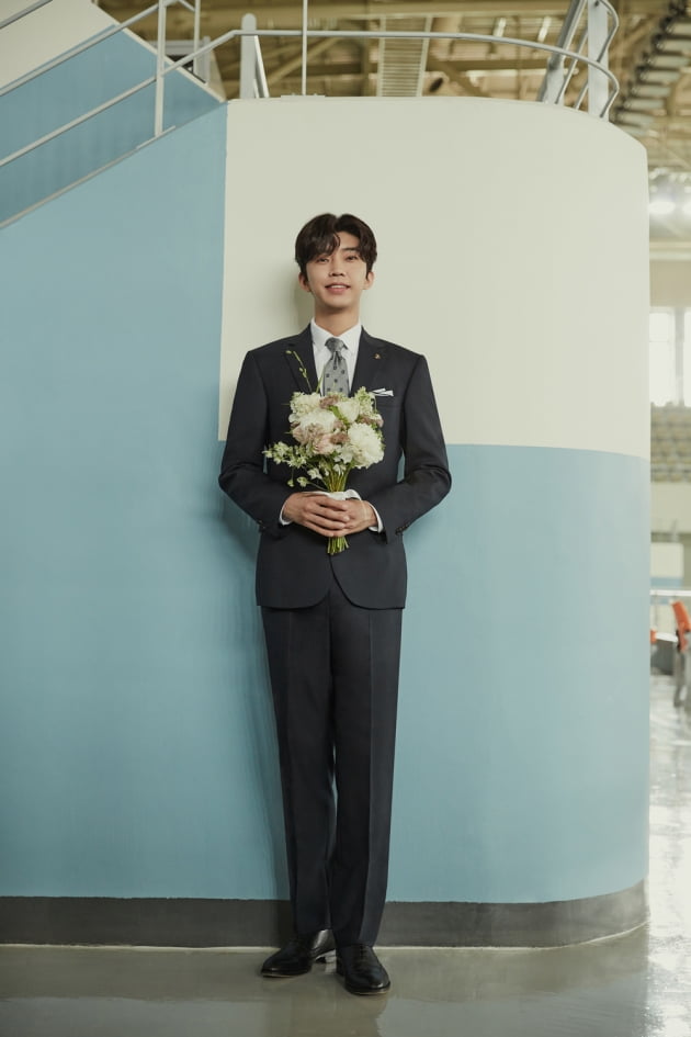 화보 속 임영웅은 꽃다발을 안은 채 톤 다운된 차콜 그레이 컬러의 세련되고 포멀한 무드의 슈트 핏을 선보이며, 늠름한 신랑감의 모습을 표현했다.