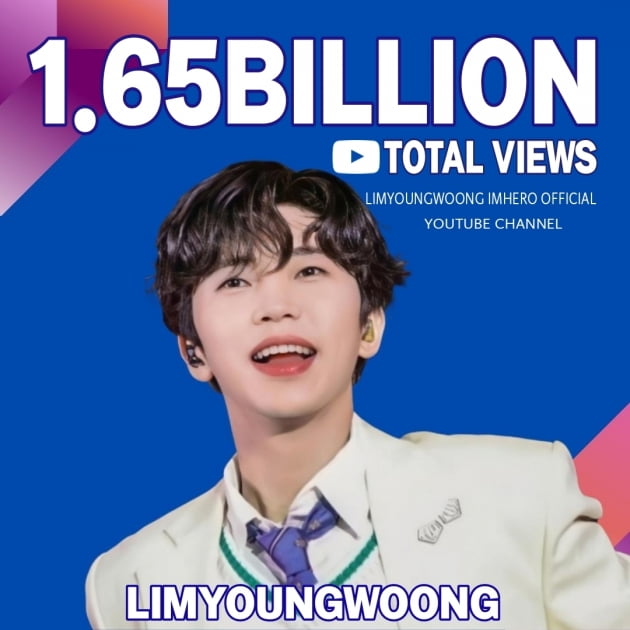 15일 기준 임영웅 공식 유튜브 채널 '임영웅'에 따르면 총 조회수가 16억 5천만 뷰를 넘어섰다. 이에 임영웅은 또 한 번의 기록을 경신한 셈이다.지난 8일 16억 4천만 뷰를 기록하고 7일만에 1000만 뷰를 추가하며 유튜브 제왕으로 우뚝 올라섰다.