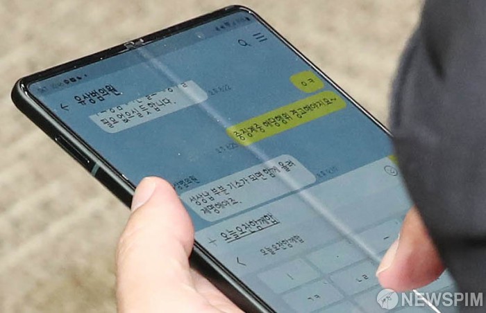 이날 오전 국회에서 열린 신임 원내대표 선출을 위한 의원총회 중 정 위원장의 휴대전화 화면이 국회 사진기자단에 의해 포착됐다. 휴대전화 메시지에서 정 위원장은 유 의원에게 '중징계중 해당행위 경고해야지요' 라고 썼다. 이에 유 의원은 '성상납 부분 기소가 되면 함께 올려 제명해야죠'라고 답했다.