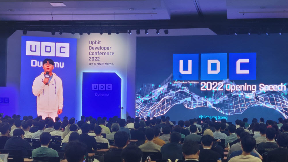 22일 부산 부산항국제전시컨벤션센터(BPEX)에서 개막한 '업비트 개발자 콘퍼런스(Upbit Developer Conference, 이하 UDC)'는 송치형 두나무 회장의 코인시장 전망을 담은 녹화 영상으로 문을 열었다.