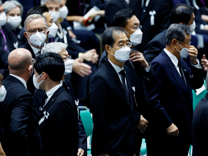 한 총리는 27일 오후 2시부터 5시까지 일본 무도관에서 개최된 아베 신조 전 일본 총리 국장에 우리 정부를 대표해 참석했다. 이날 국장에는 약 210여개 국가 및 지역·국제기구 대표단이 참석했다.