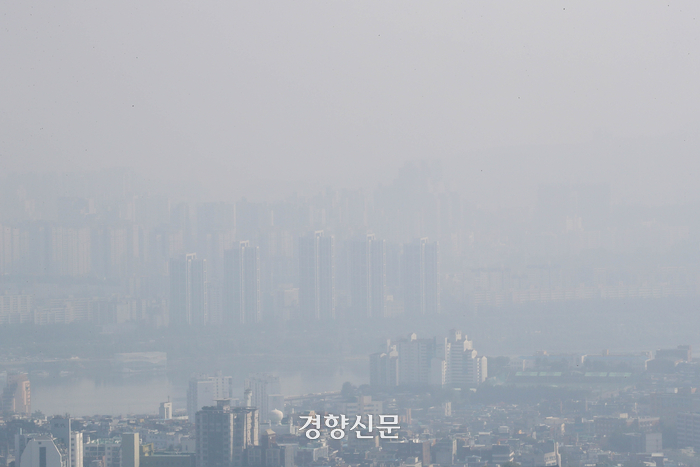 수도권을 중심으로 미세먼지 농도 ‘나쁨’을 보인 지난 29일 서울 용산구 남산 서울 타워에서 바라본 서울 여의도 방면이 미세먼지로 뿌옇다./한수빈 기자 |