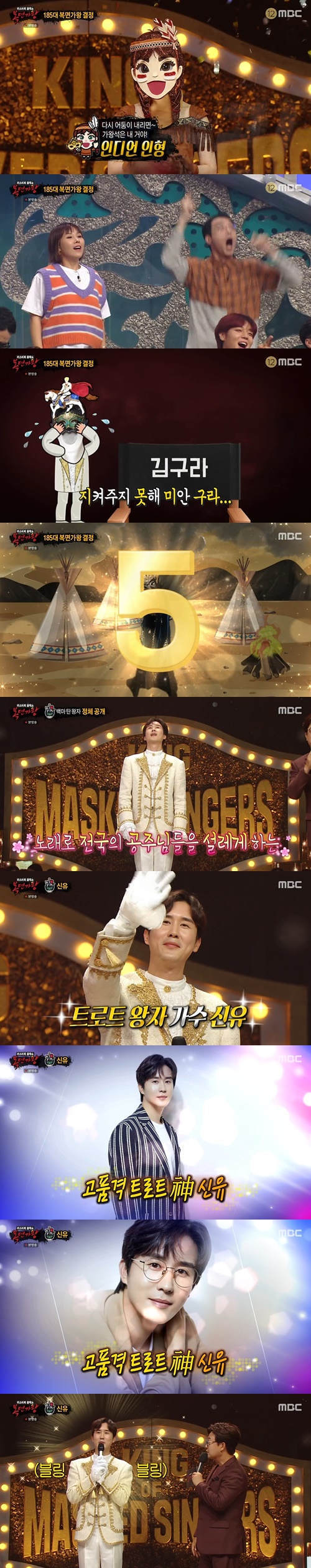 ‘복면가왕’ 인디언 인형이 5연승에 성공한 가운데 백마 탄 왕자가 신유로 밝혀졌다. 사진=MBC 예능프로그램 ‘복면가왕’ 캡처 |
