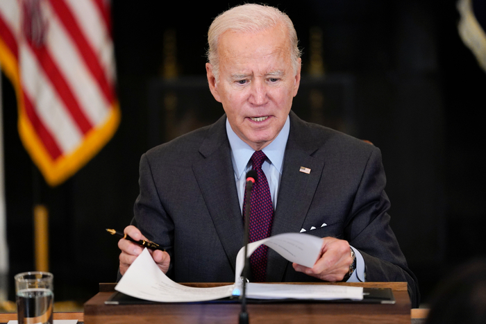 조 바이든 미국 대통령이 4일(현지시간) 워싱턴 백악관에서 여성의 임신중단 권리 보장에 관한 회의를 주재하고 있다. 워싱턴|AP연합뉴스 |