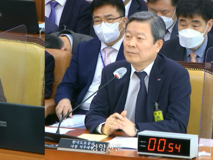 7일 국회에서 열린 한국도로공사 국정감사에서 김일환 도공 사장 직무대행이 답변하고 있다. |