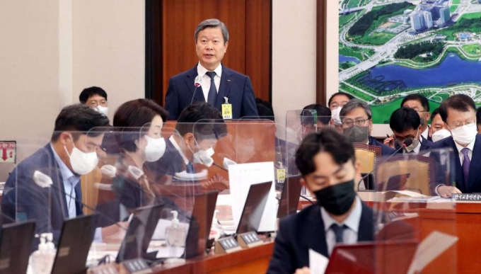 [서울=뉴시스] 김선웅 기자 = 김일환 한국도로공사 사장 직무대행이 7일 서울 여의도 국회 국토교통위원회에서 열린 한국도로공사 등에 대한 국정감사에서 업무보고를 하고 있다. (공동취재사진) 2022.10.07. |