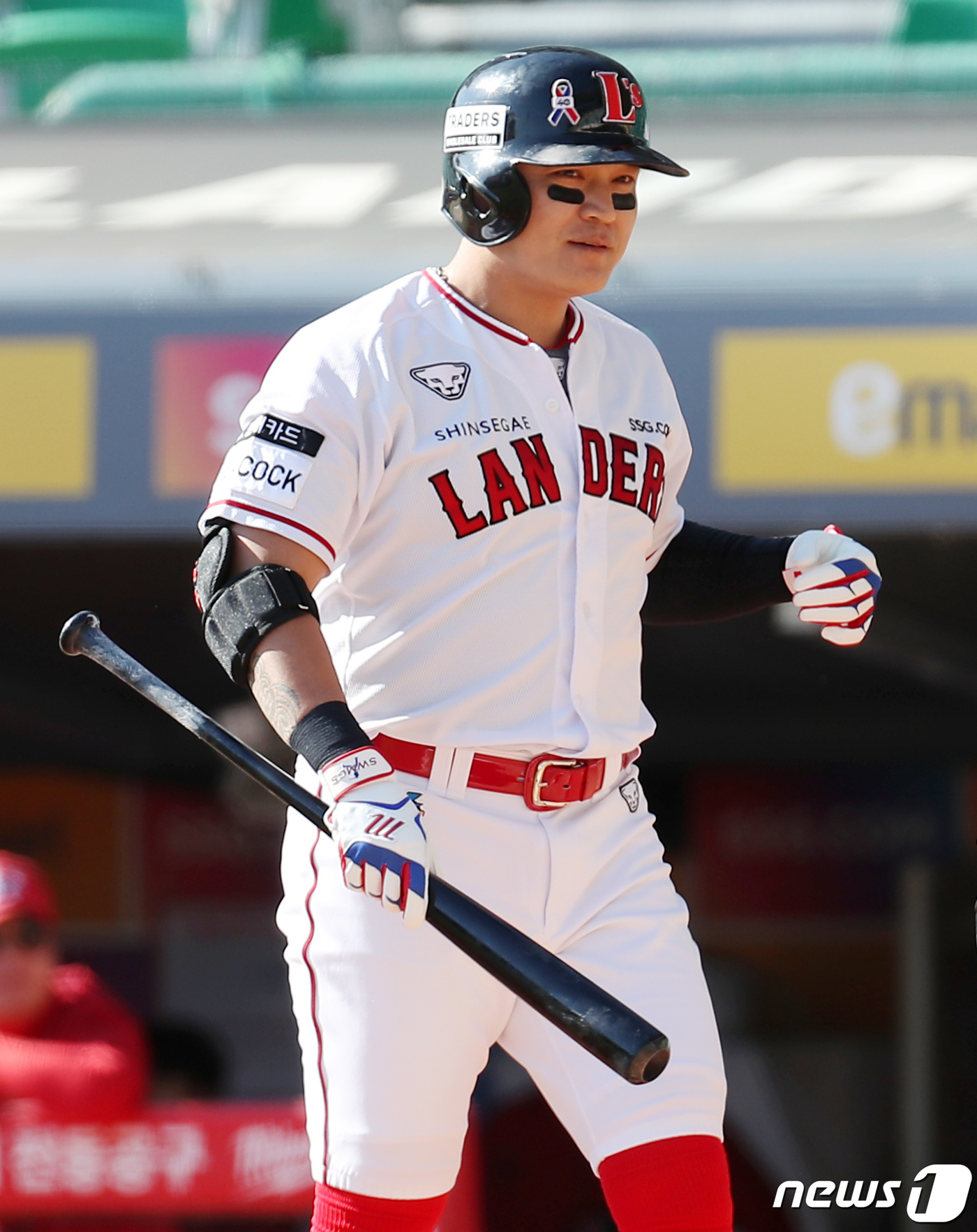(인천=뉴스1) 민경석 기자 = 23일 오후 인천 미추홀구 SSG 랜더스필드에서 열린 두산 베어스 2군과 SSG 랜더스와의 연습경기에서 SSG 추신수가 타석에 나서고 있다. 2022.10.23/뉴스1