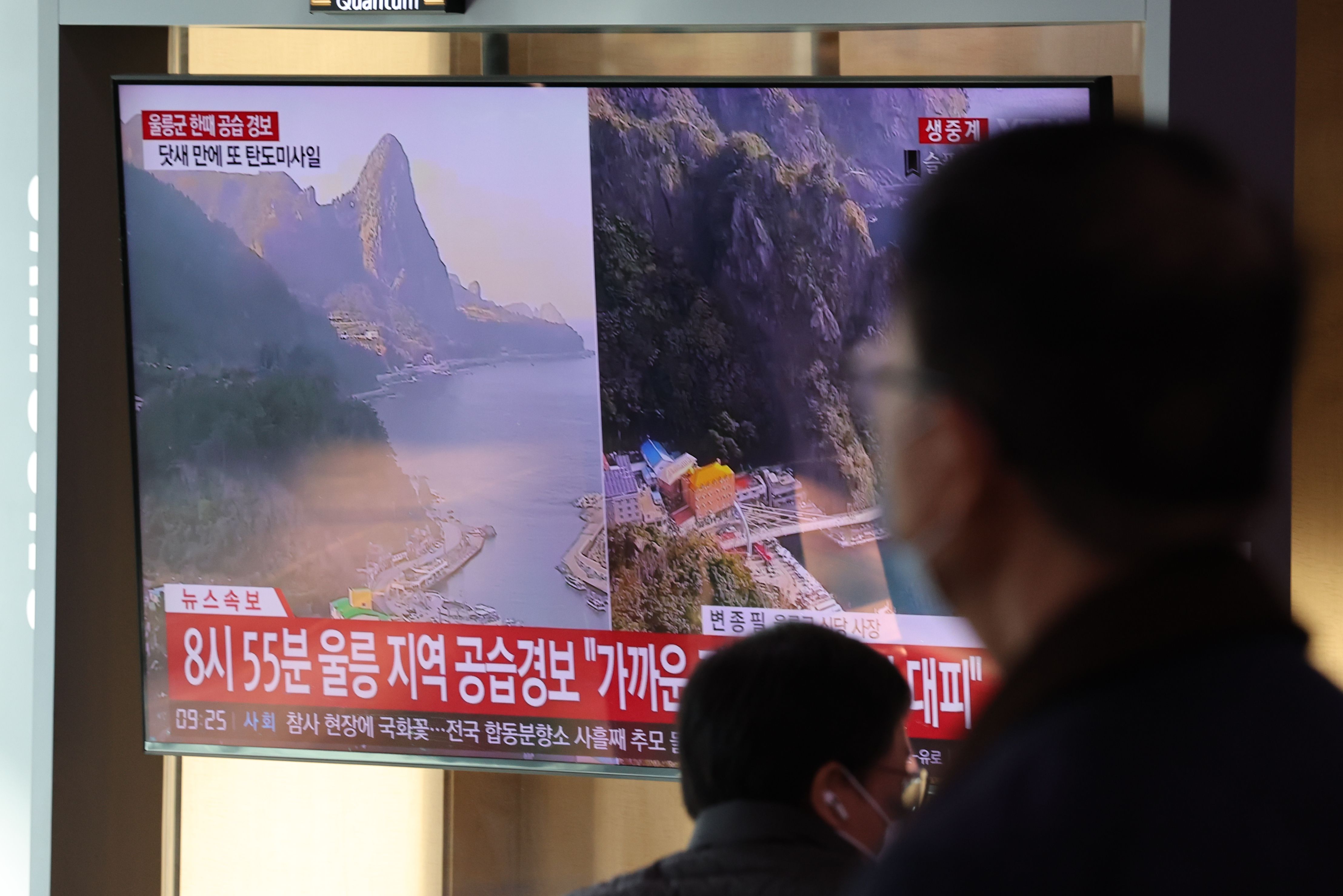 2일 오전 서울역 대합실에서 시민들이 북한의 동해상 탄도미사일 발사 관련 뉴스를 시청하고 있다./뉴스1 |