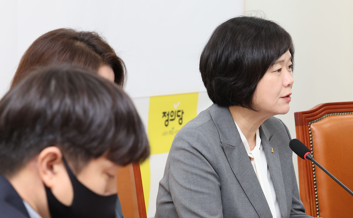 이정미 정의당 대표가 7일 국회에서 열린 제1차 상무집행위원회에서 발언하고 있다. 연합뉴스 |