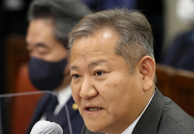 이상민 행정안전부 장관이 7일 오후 서울 여의도 국회에서 열린 행정안전위원회 전체회의에서 의원 질의에 답변하고 있다.뉴시스 |