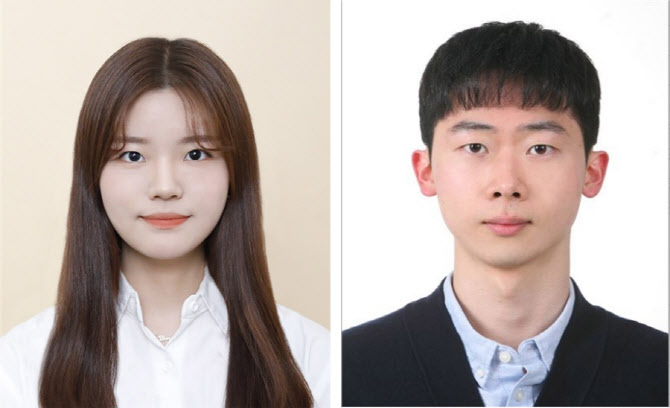 제2회 미세먼지 연구 논문 공모전 환경부장관상(대상) 수상자 은다미 학생(왼쪽)과 장려상 수상자 한윤성 학생. (사진=가톨릭대 제공) |