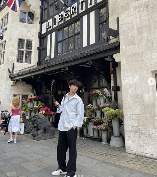 사진 속에는 셔츠에 검은색 바지를 매치한 임영웅이 런던을 배경으로 다양한 포즈를 취하고 있다. 무엇보다 임영웅은 오버사이즈 셔츠의 단추를 살짝 풀어 섹시한 어른 매력을 발산하고 있어 눈길을 사로잡는다.