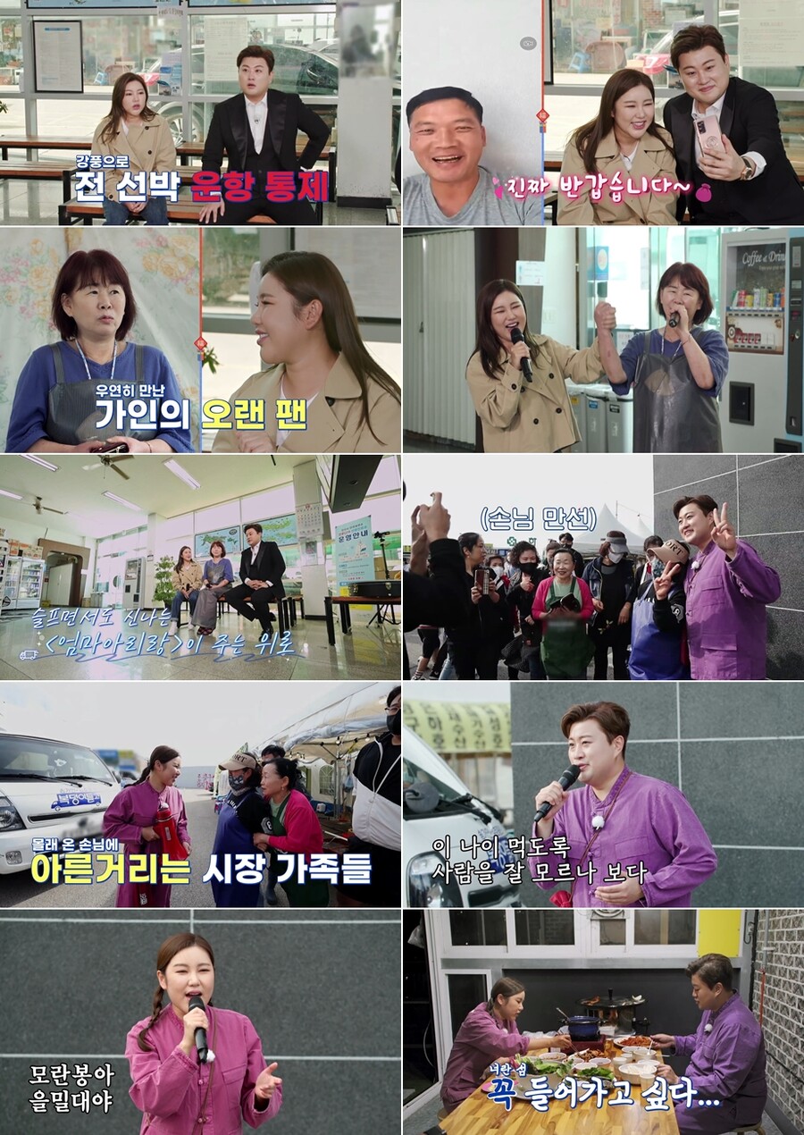 이런 두 사람 앞에 뜻밖의 관객이 한 명 나타났다. 선착장에서 식당을 운영하고 있는 김민정 씨는 ‘미스트롯’ 첫 회부터 송가인의 오랜 팬으로, 이날도 '엄마 아리랑'을 검색해 듣고 왔다고 밝혔다. 또 송가인의 곡 중 최애곡이 무엇이냐는 질문에 "곧 있을 내 회갑잔치에서 송가인의 '엄마 아리랑'을 부르려고 맹연습 중"이라고 고백했다. 이에 송가인과의 즉흥 듀엣이 성사됐고, 그 자리에서 곧바로 무대가 연출됐다.