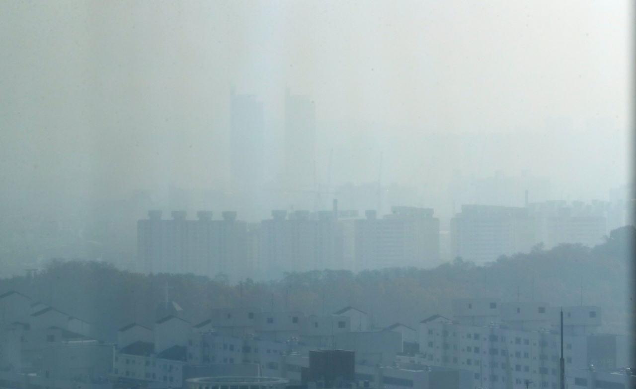 대전을 비롯해 충청권 초미세먼지 농도가 나쁨을 기록한 10일 오전, 미세먼지가 뒤덮은 대전 도심이 뿌옇게 보이고 있다. [연합] |