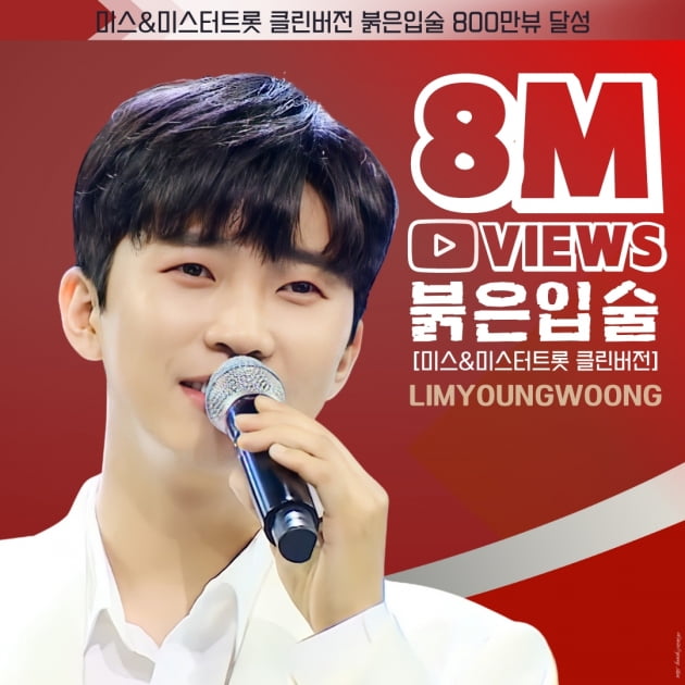 지난해 8월 13일 유튜브 채널 '미스&미스터트롯 공식계정'에 올라온 '임영웅 '붉은 입술' 사랑의 콜센타' 영상은 12일 기준 800만뷰를 돌파 했다.