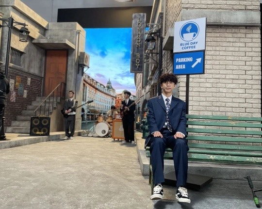 공개된 사진 속에는 임영웅이 귀여운 뽀글머리에 안경, 정장을 입은 채 벤치에 긴장한듯 앉아 있다. 임영웅의 댄디함 대신 귀여움으로 가득찬 모습이 팬들의 마음을 심쿵케 한다.