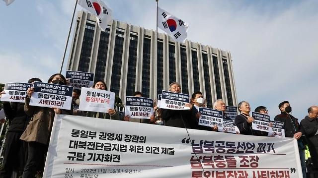 6·15공동선언실천 남측위원회 등은 15일 권영세 통일부 장관이 대북전단금지법(남북관계 발전에 관한 법률 개정안)이 위헌이라는 의견서를 헌법재판소에 제출한 것에 대해 철회를 주장하는 동시에 권 장관의 사퇴를 촉구했다.