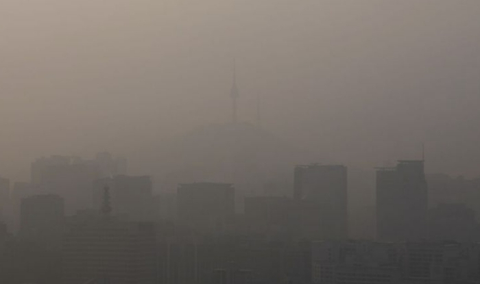 지난 10일 인왕산에서 내려다본 서울시내가 미세먼지와 안개로 뿌옇다. [사진=연합뉴스] |