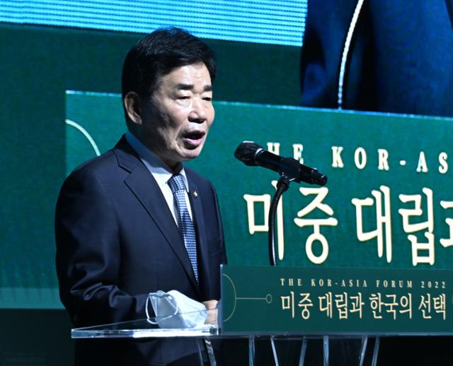 김 의장은 이날 서울 신라호텔에서 ‘미중 대립과 한국의 선택’을 주제로 열린 ‘2022 코라시아포럼’ 축사에서 “국제 질서의 빠른 재편 속에서 외교의 역할이 어느 때보다 커진 시국"이라며 의회 외교의 중요성을 강조했다. 또 "국회의장으로서 의회 외교가 감당해야 할 책임을 총력을 다해 수행할 수 있도록 최선을 다할 것"이라면서 "빈 곳은 채우고 더할 곳은 더욱 튼튼히 하겠다"고 덧붙였다.
