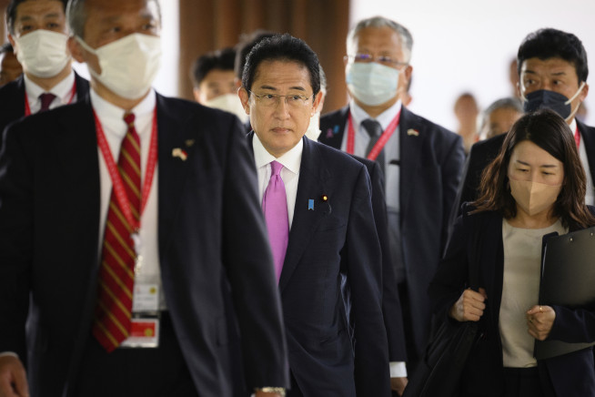 기시다 후미오 일본 총리가 16일(현지시간) 주요 20개국(G20) 정상회의가 열리는 인도네시아 발리에서 긴급회의 참석을 위해 이동하고 있다. 발리(인도네시아)/AP뉴시스 |