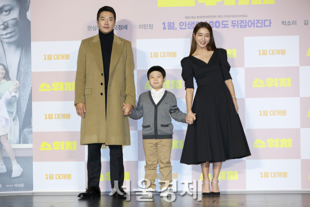 23일 오전 서울 광진구 롯데시네마 건대입구에서 '스위치'(감독 마대윤) 제작보고회가 진행됐다. 마대윤 감독을 비롯해 배우 권상우, 오정세, 이민정, 김준이 참석해 작품에 대해 다양한 이야기를 나눴다.