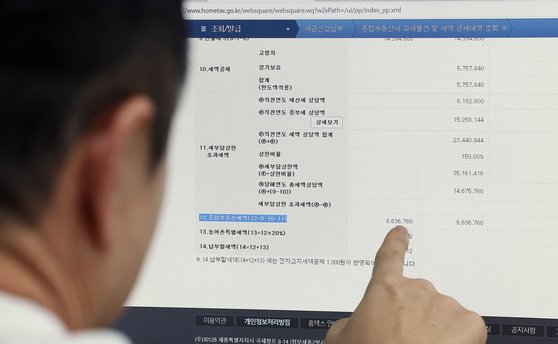 한 납부 대상자가 국세청 홈택스 홈페이지를 통해 종부세 고지 내역을 확인하고 있다. 연합뉴스 |