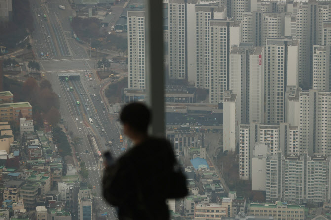 지난 21일 서울 송파구 롯데월드타워 전망대 서울스카이에서 바라본 서울 시내 아파트 모습.(사진 = 연합뉴스) |