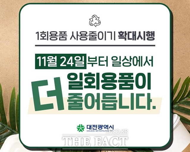 [더팩트ㅣ대전=라안일 기자] 대전시는 ‘자원재활용법 시행규칙’ 개정안 시행에 따라 오는 24일부터 1회용품에 대한 사용 규제를 강화한다고 23일 밝혔다.