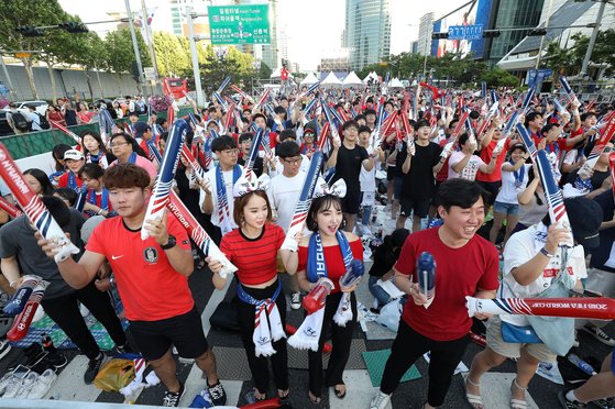 2018 러시아월드컵 당시 서울 강남구 코엑스앞 영동대로 팬파크를 찾은 시민들이 거리응원을 펼치고 있다. 뉴스1 |