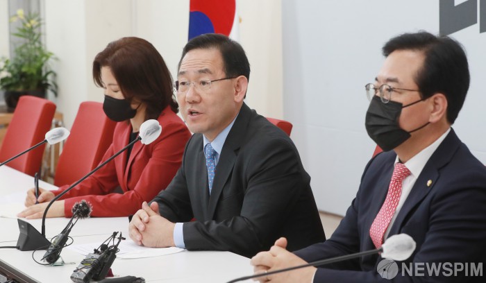 [서울=뉴스핌] 이형석 기자 = 주호영 국민의힘 원내대표가 29일 오후 서울 여의도 국회에서 비공개 긴급 중진의원 회의를 마치고 브리핑을 하고 있다. 2022.11.29 leehs@newspim.com