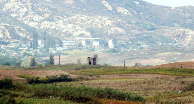 지난 10월 4일 경기 파주시 판문점 3초소에서 북한 기정동 마을에 북한 주민들의 모습이 보이고 있다. /사진=뉴시스 |