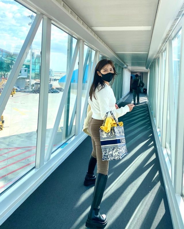 송가인은 2일 "즐겁게 즐겁게!♥"라는 글과 함께 여러 장의 사진을 게재했다. 공개된 사진 속에는 비행기 탑승을 위해 걸어가고 있는 송가인의 모습이 담겼다.