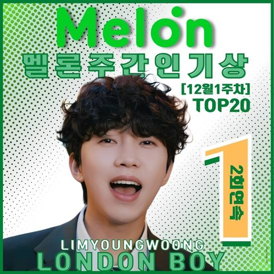 'London Boy' TOP1. 임영웅은 멜론 앱에서 진행된 12월 1주차 주간 인기상 투표와 음원차트 성적을 종합한 순위에서 BTS 진과 정국을 따돌리고 당당히 1위를 차지했다. /영웅시대 제공 |