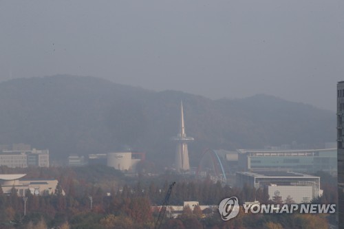 미세먼지와 안개로 뿌연 대전 한빛탑 |