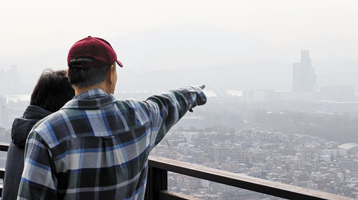 추위가 한풀 꺾이니 미세먼지가 다시 기승을 부리고 있다. 9일 오후 서울 시내가 미세먼지 때문에 뿌옇게 보인다. 이날 수도권 일대는 초미세먼지 농도가 ‘나쁨’ 수준까지 올라갔다. 국립환경과학원은 10일에는 남부 지방을 중심으로 대기가 탁할 것이라고 예상했다.