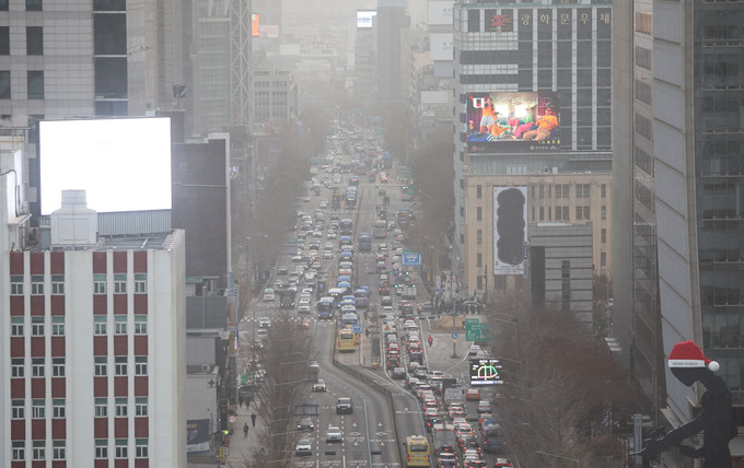 13일 오전 서울 종로 시내가 뿌옇게 보인다.연합뉴스 |