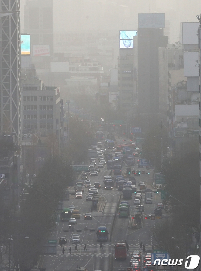 13일 오전 서울 종로구 일대가 미세먼지로 뿌옇다. 서울시는 이날 오전 4시 기준 미세먼지(PM-10) 시간당 평균 농도가 150㎍/㎥ 이상이 2시간 지속돼 미세먼지 주의보를 발령한다고 밝혔다. 서울 25개구 시간 평균 농도는 오전 3시 기준 193㎍/㎥, 오전 4시 기준 283㎍/㎥를 기록했다/사진=뉴스1 |