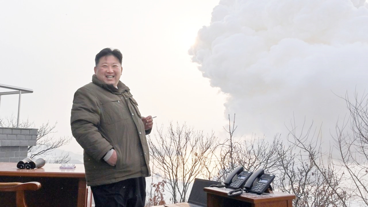 조선중앙통신이 공개한 영상과 사진은 김 위원장이 발사장에서 한 손에 담배를 든 채 함박웃음을 짓고 있는 모습을 담고 있다. 김 위원장 옆에는 유선전화기 2대와 검은색 노트북이 놓여있고, 뒤로는 로켓엔진 시험 과정에서 나온 것으로 보이는 거대한 연기가 솟아오르고 있다.