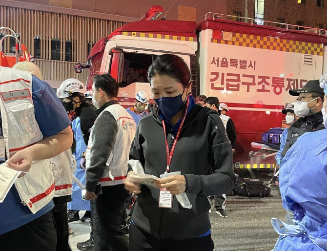 신현영 의원이 지난 10월 30일 서울 이태원 사고 현장에서 재난의료지원팀(DMAT)으로 지원하는 모습 (사진=신현영 의원 페이스북 갈무리) |