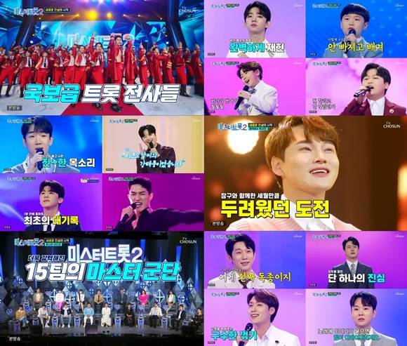 끝으로 타 방송사 트로트 오디션을 제패한 진해성이 등장해 이목을 집중시켰다. 그는 "다른 프로그램에서 1등을 했다고 가만히 안주하고 있으면 아무 일도 일어나지 않는다. 인생은 도전의 연속"이라며 남다른 각오를 내비쳤다. 이미 탄탄한 팬덤과 인지도를 보유하고 있는 진해성이 '미스터트롯2'를 통해 보여줄 새로운 도전에 관심이 모아지고 있다.