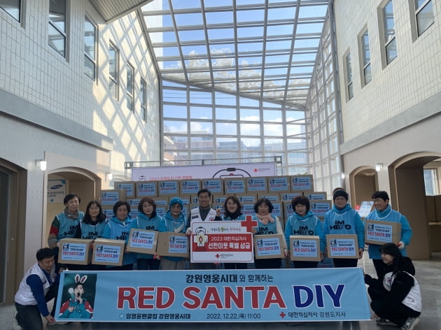 가수 임영웅 팬클럽 강원영웅시대는 22일 대한적십자사 강원도지사에서 2023 대한적십자사 선한이웃 특별 성금의 일환으로 ‘강원영웅시대와 함께하는 RED SANTA DIY’ 봉사를 진행했다.