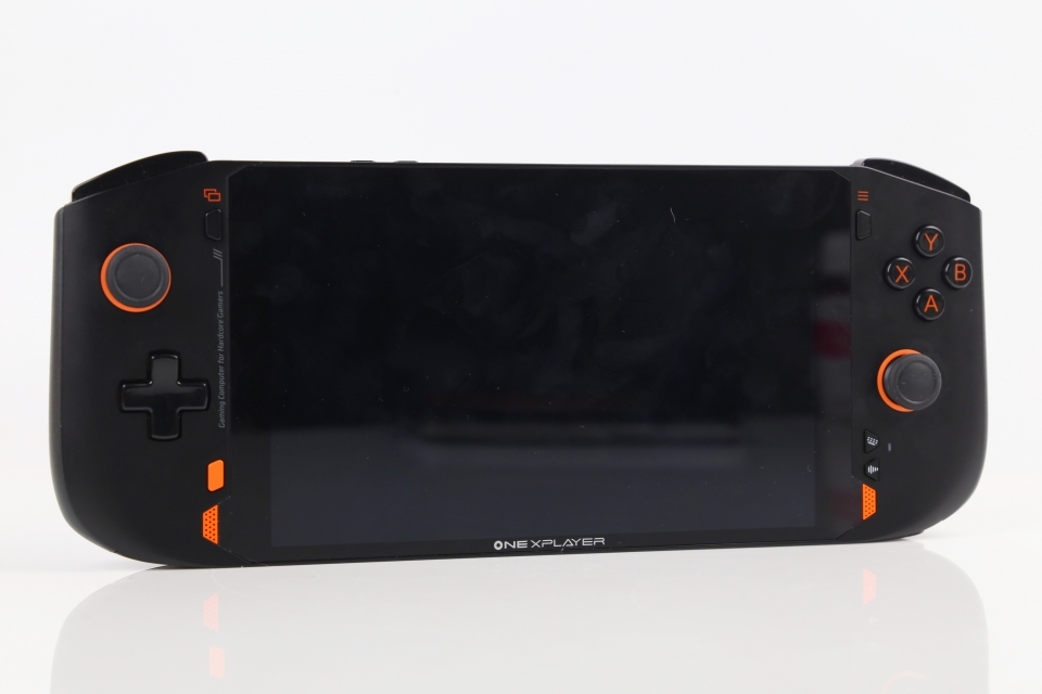 7인치 16:10 IPS 패널을 품었고 상단과 하단 베젤이 매우 얇은 것을 확인할 수 있다. 디스플레이 품질도 UMPC 게임기 중에서는 최상급에 속한다. 게임기 전면에 스피커가 탑재되어 비교적 깔끔한 사운드를 제공하는 점도 장점이다. 참고로 사진상에 화면 비교용으로 쓰인 스마트폰은 '아이폰 13 프로'다.