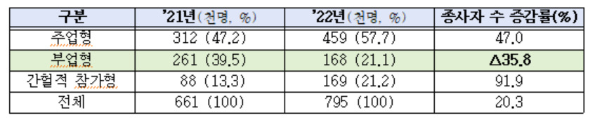 이번 조사에 참여한 김준영 한국고용정보원 연구위원은 “이런 플랫폼종사자 규모 증가는 코로나19 이후 일하는 방식의 변화, 디지털 경제의 확산 등으로 가사·청소·돌봄, 미술 등 창작활동, 전문서비스 등 그간 오프라인을 중심으로 이루어지던 노무제공 분야가 점차 플랫폼 노동으로 전환되고 있음을 시사한다”며 “플랫폼종사자 중에서 배달·배송·운전 직종이 차지하는 비중(75.9%→64.5%)이 크게 감소하고, 주업형과 간헐적 참가형으로 플랫폼 노동이 양분화되고 있다는 조사 결과는 사회적 거리두기 완화 이후의 최근 플랫폼 노동시장의 변화를 반영한 것으로 보인다”고 말했다.