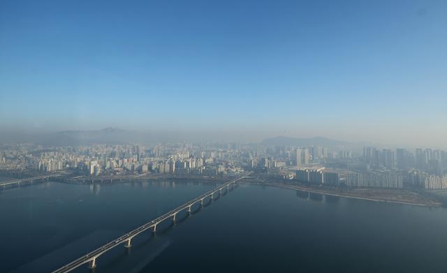 서울 대부분 지역에 초미세먼지 농도가 '나쁨' 수준을 보인 지난 27일 서울 여의도 63스퀘어전망대에서 바라본 도심이 뿌옇게 보인다. 연합뉴스 |