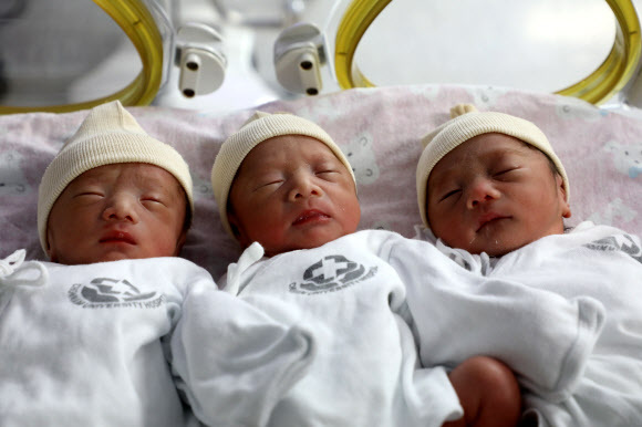 1월 1일 0시 0분에 태어난 세쌍둥이. 사진=연합뉴스 |