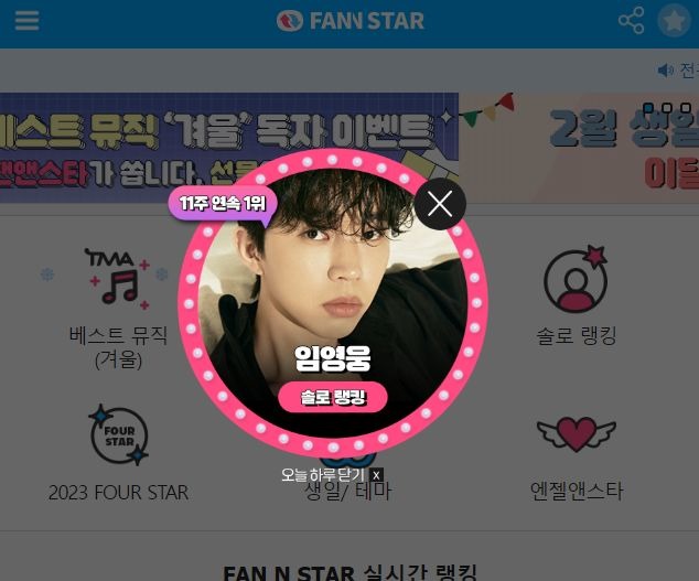 '팬앤스타' 12월 다섯째 주 솔로 랭킹 투표에서 2631만 2610표 득표
