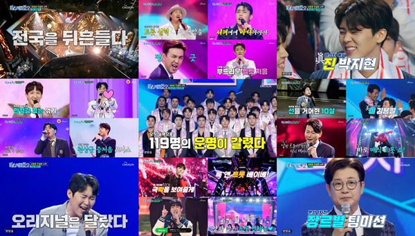 지난 5일 방송된 TV조선 트롯 서바이벌 ‘미스터트롯2-새로운 전설의 시작’(이하 ‘미스터트롯2’)에선 마스터 예심 세 번째 이야기 그리고 본선 1차전 팀 미션을 선보이며 안방을 트롯 열기로 후끈하게 달궜다.