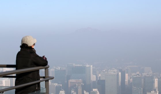 미세먼지가 기승을 부린 8일 오전 서울 남산공원에서 바라본 도심이 뿌옇게 보이고 있다. 뉴스1 |