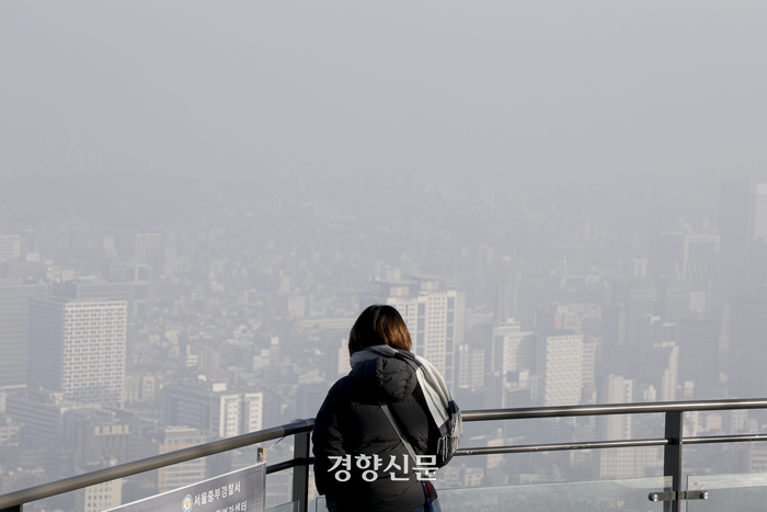 서울 등 전국 대부분 지역에 미세먼지 농도가 ‘나쁨’ 수준을 보이고 있는 8일 서울 중구 남산에서 바라본 도심이 뿌옇다. 문재원 기자 |